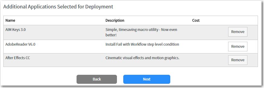 Select the additional applications that you want to migrate and then click Add Applications. The applications are added to the Additional Applications Selected for Deployment table at the bottom of the panel.