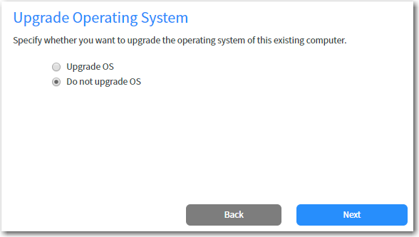 • If you want to upgrade the OS of the existing computer, select Upgrade OS.