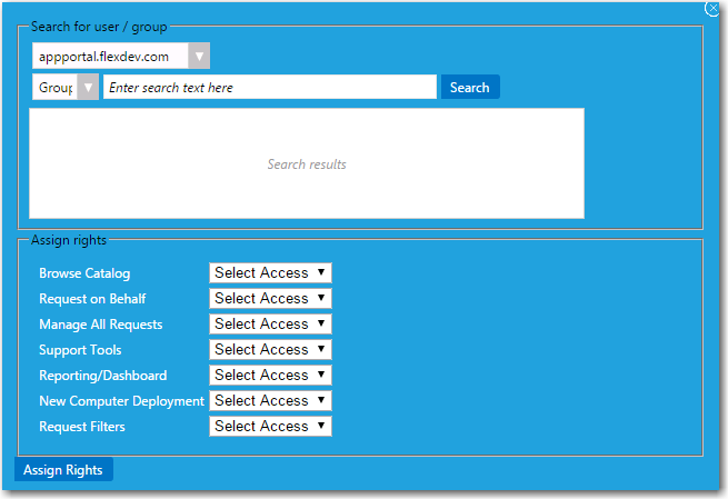 Click Assign Rights to add the user or group.